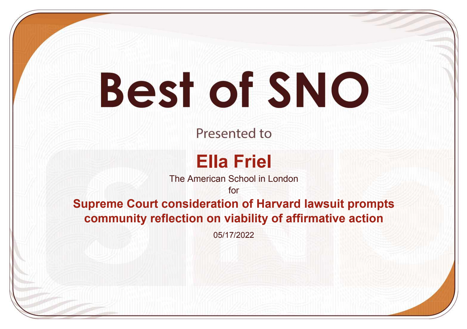- JDay+/CCIM+ Student Contest Excellence in Newswriting